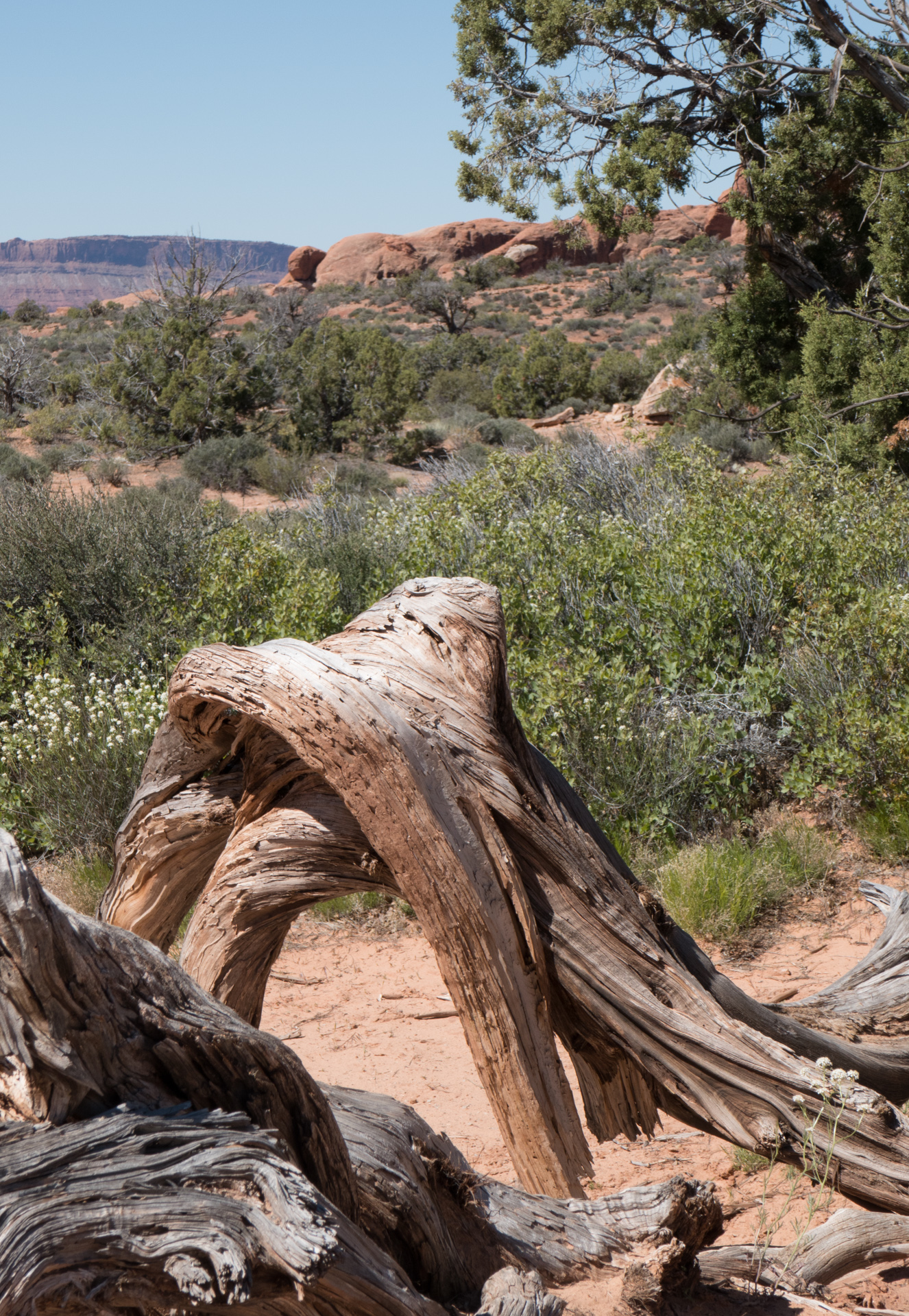 20160503 – 100426 – 20160503-P1020644 Published Mai 12, 2016 at 1326 × 1920 in Drei Nationalparks und ein totes Pferd Ein total verbogener Baumstamm als Vorgeschmack auf die Arches