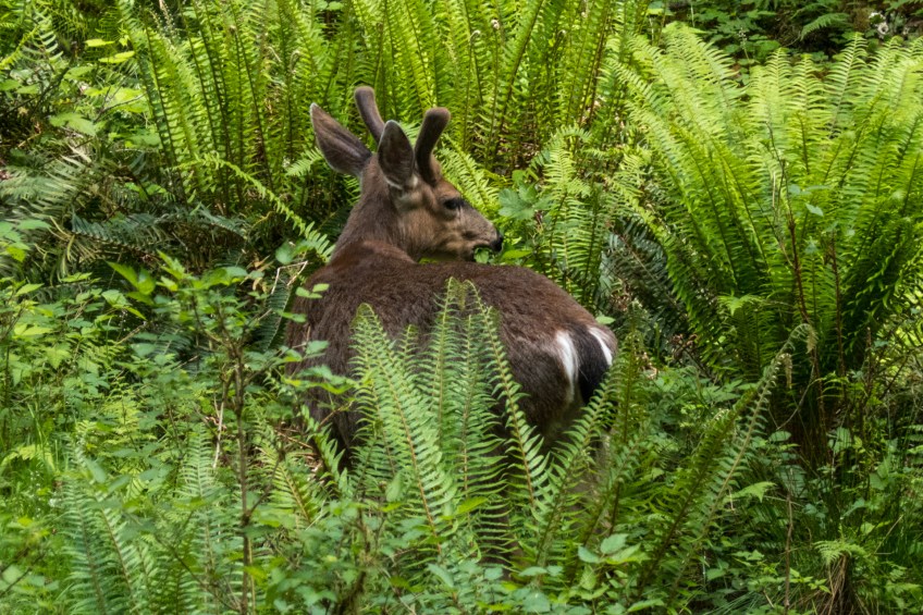 20160520 – 142634 – 20160520-P1050175 Published Mai 25, 2016 at 1920 × 1280 in Yellowstone-Seattle: Die lange Fahrt zurück ans Meer (Teil 2) Fast ein Elch (männliches black-tailed deer). Er lässt sich bei seinem späten Mittagessen nicht von uns stören.