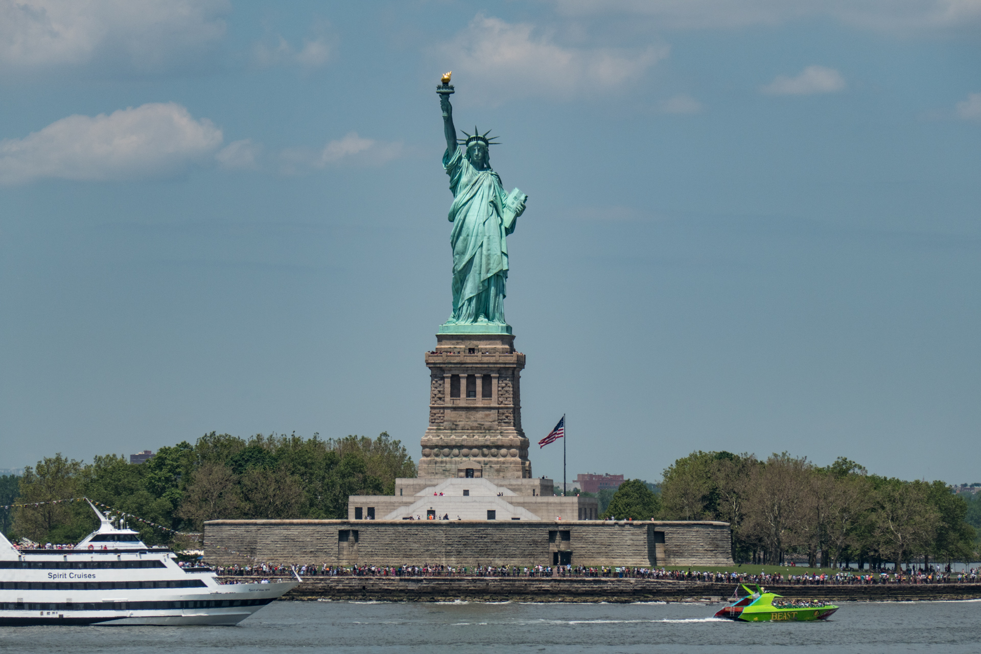 20160531 – 091631 – 20160531-P1050569 Published Juni 4, 2016 at 1920 × 1280 in New York zeigt seine Sonnenseite Mit der luftigen Fähre nach Staten Island. Unterwegs treffen wir auf die Freiheitsstatue.